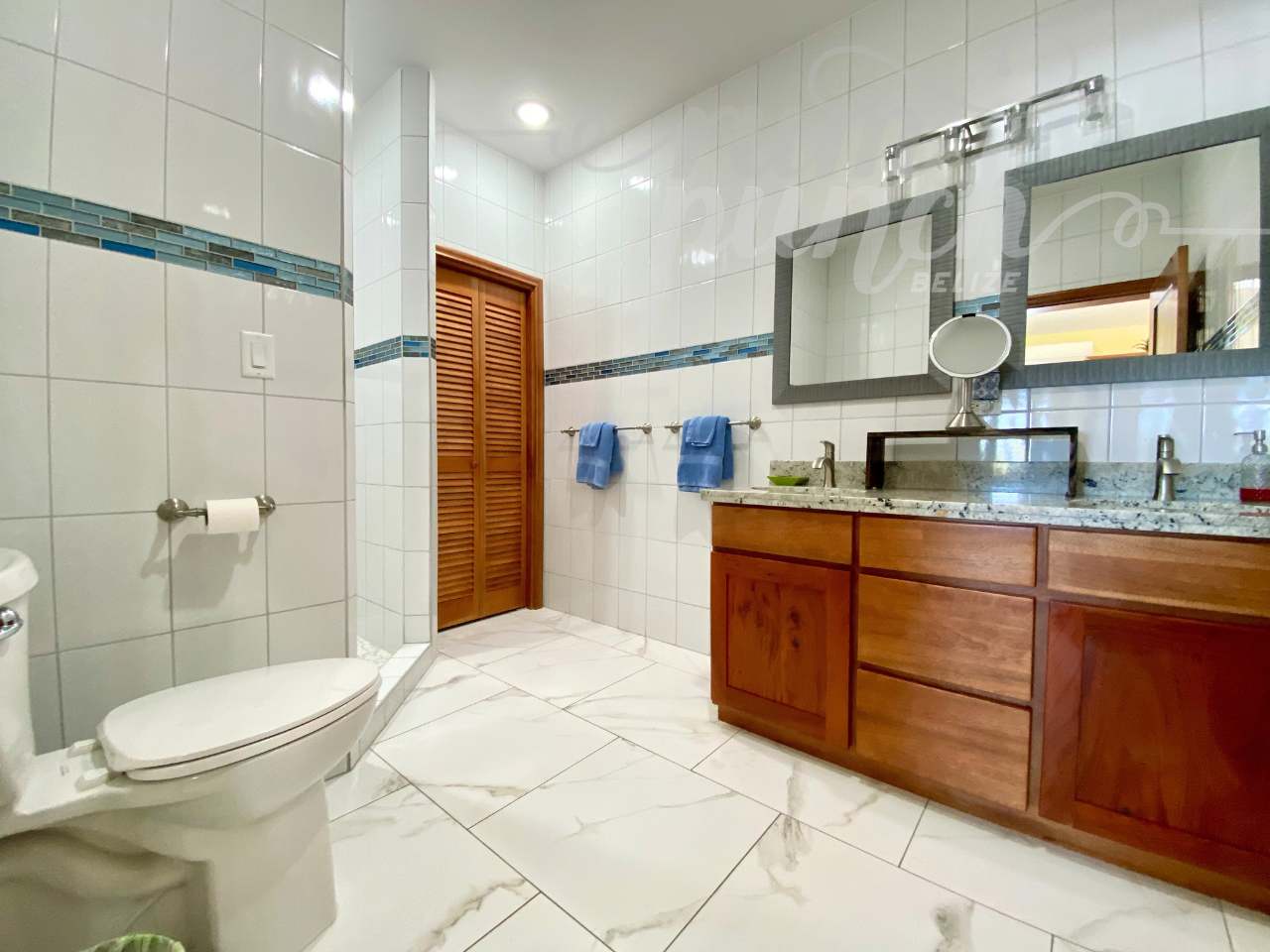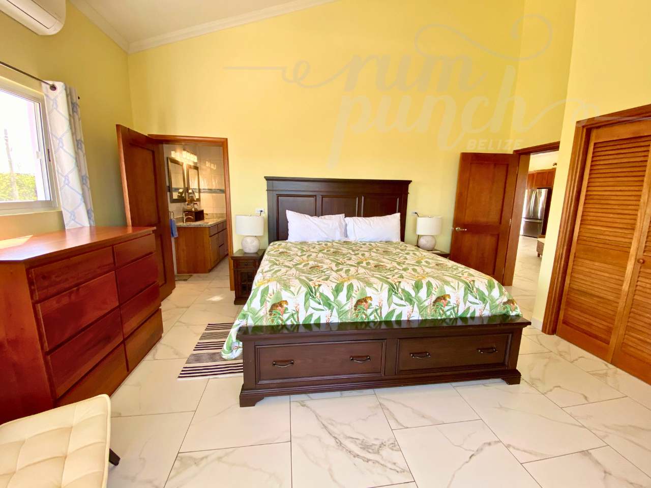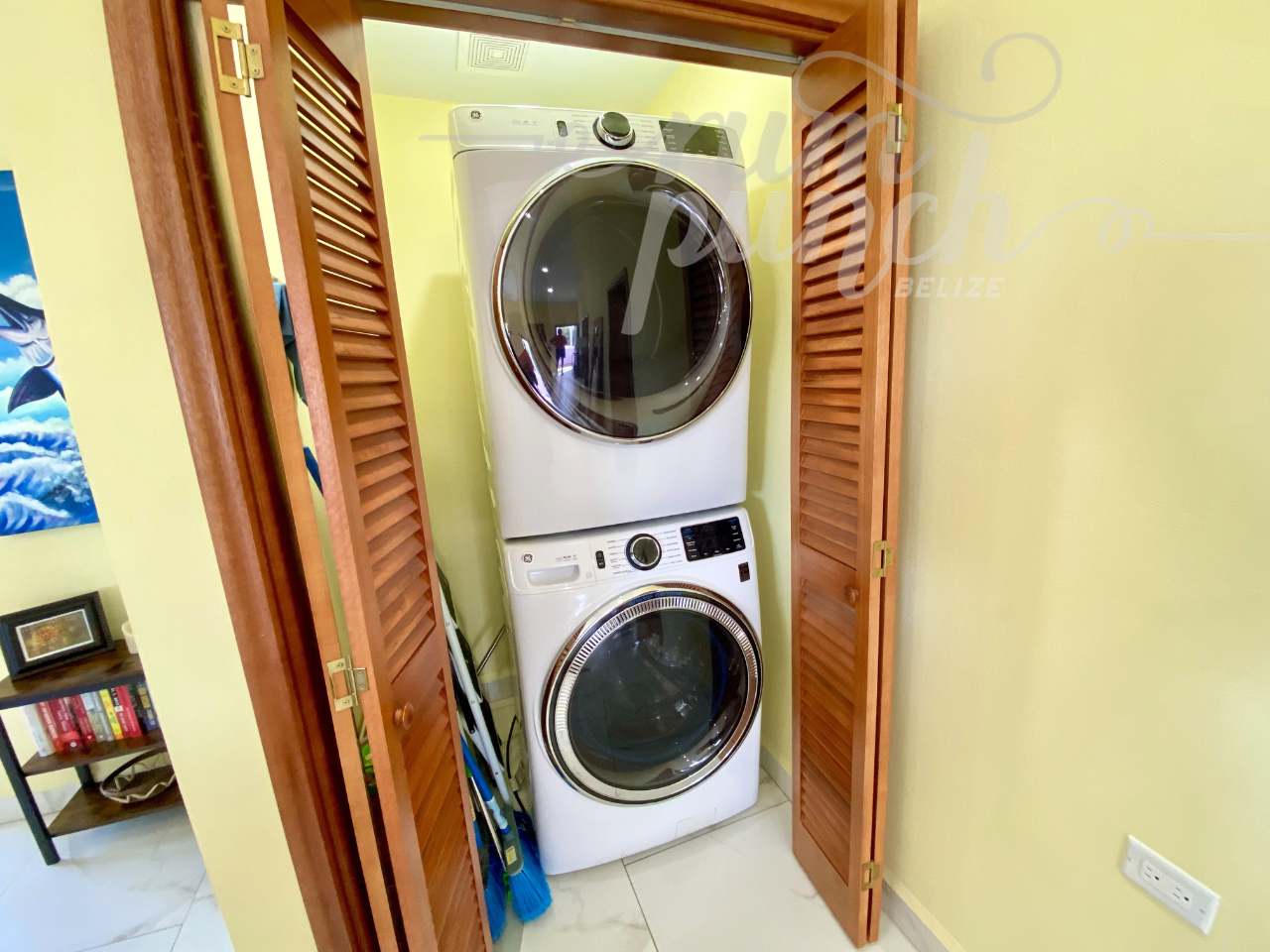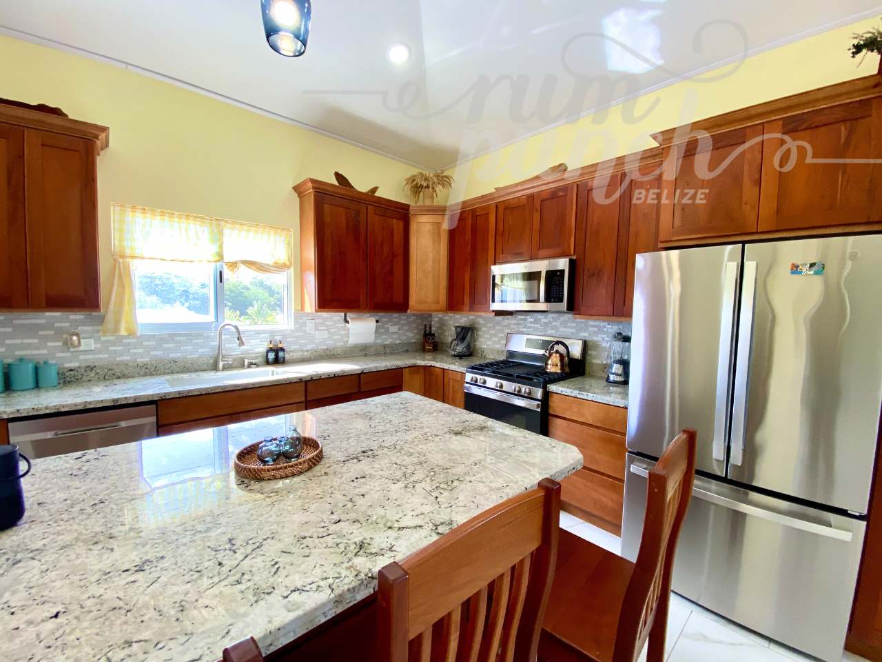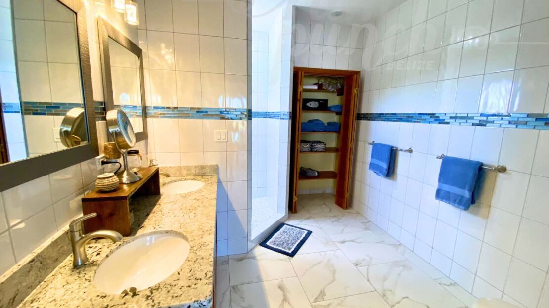 The interior craftsmanship reflects the best of Belizean artistry. All woodwork throughout the home is custom hardwood, handcrafted by local artisans in Belize, giving the property a warm and authentic character. The kitchen and storage areas feature premium pull-out shelving and custom cabinetry, designed for both beauty and convenience.